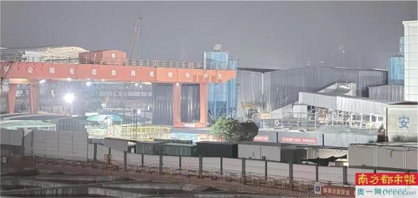 3月9日晚23:39,深圳市城市轨谈交通22号线一期松和站工程状貌工地上仍有吊车在功课。